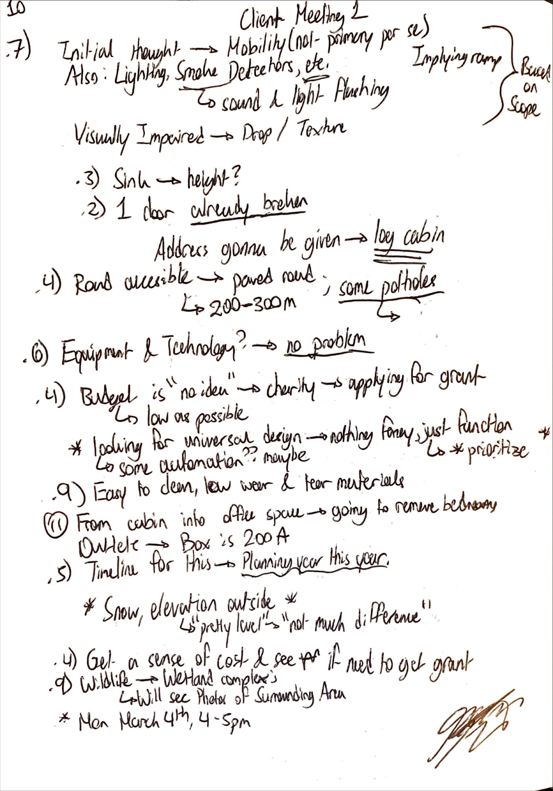 The first thing our team did (besides for introduce ourselves to each other) was define the problem at hand. When we got our client statement, we needed to translate it from plain English into a specific problem with testable metrics we can design for. This section of the project includes a lot of research, and a lot of measurements. One difficulty we faced is that our client is based our of Peterborough, whereas we are based in Toronto. This meant that we could not visit the site in-person. However, the KLT generously created a virtual blueprint so that we could examine the log cabin and create a detailed problem statement.